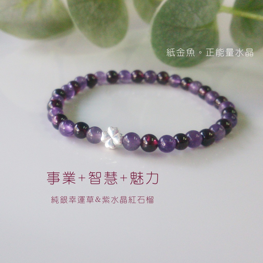 紙金魚正能量水晶 好的開始 天然紫水晶石榴石純銀幸運草助事業考試招桃花增魅力細手鍊開運水晶設計款水晶手鍊 蝦皮購物